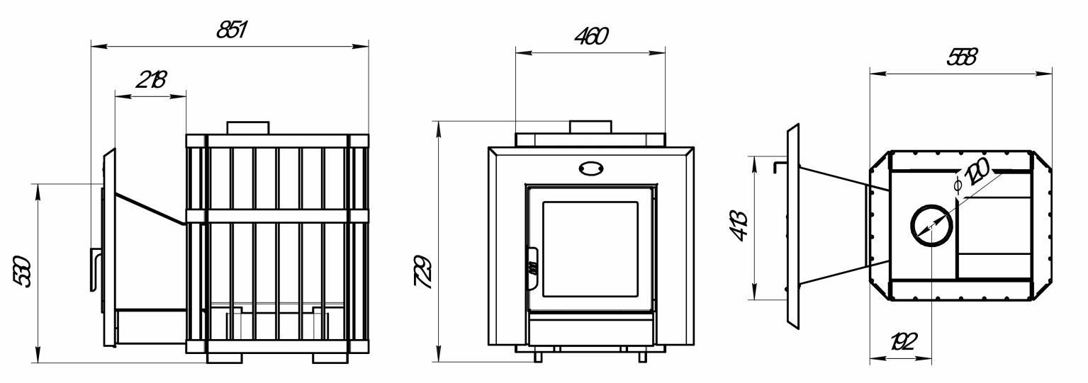 Kiukaan ylälevyn paksuus on 8 mm, mikä varmistaa kestävyyden käytettäessä happamissa ympäristöissä ja korkeissa lämpötiloissa. Kaksinkertainen S-muotoinen savukanava varmistaa kiukaan nopean ja tehokkaan toiminnan minimaalisella polttopuumäärällä.